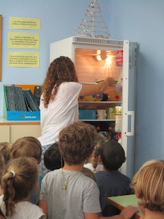 Després de la conversa, com veis a les imatges, vàrem anar cap a la sala de mestres, a ficar aigua al congelador i a la gelera, al dia següent veuríem el resultat.
